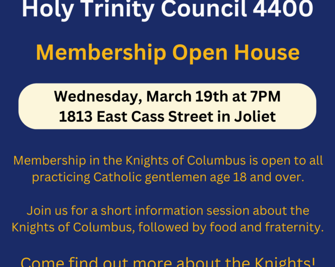 St Paul the Apostle Council # 11232 will conduct a Membership Drive / Benefits event immediately following the 11AM Mass on Sunday October 19, 2025 at St. Paul the Apostle Catholic Church 511 N. Conrad Av. Peotone, IL 60468. All are invitedContinue Reading
